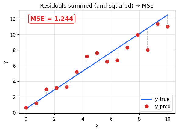 회귀 모델이 얼마나 틀렸는지를 숫자 하나로 요약하는 가장 기본적인 손실 함수.