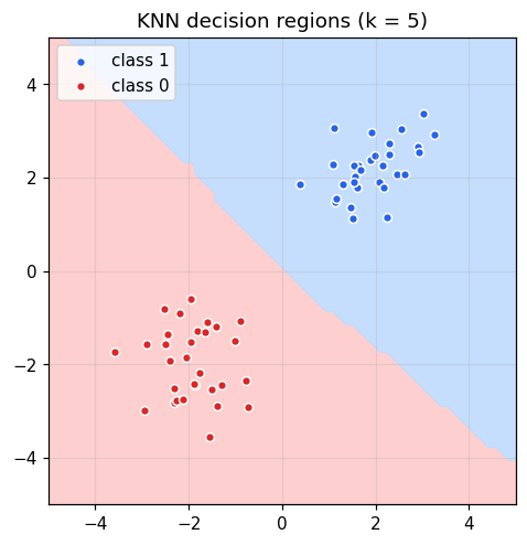 학습 없음. 예측할 점이 오면, 훈련 데이터에서 가장 가까운 k개를 찾고 다수결로 라벨을 정합니다.