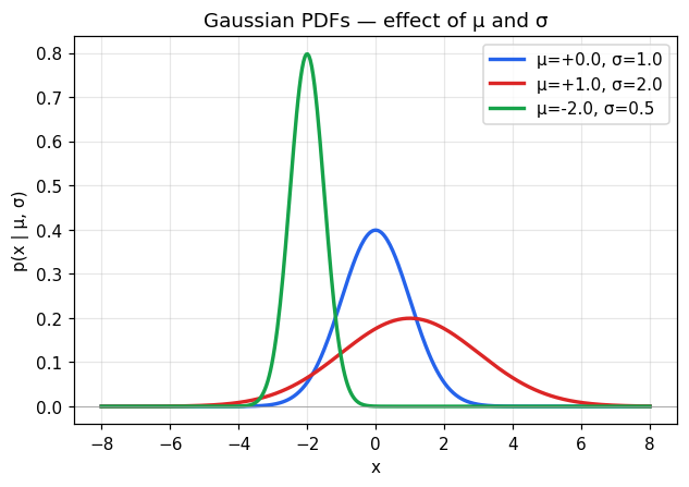 p(x∣μ,σ)=σ2π1exp(−2σ2(x−μ)2)